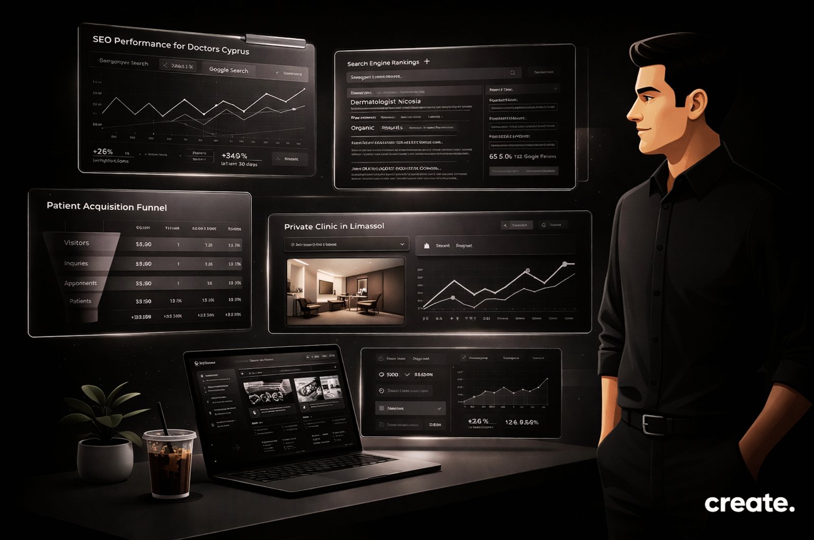 At Create, we help doctors and medical professionals across Cyprus build strong, ethical, and results driven digital marketing strategies that generate consistent patient enquiries while protecting professional integrity.
